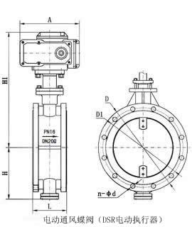 電動煙道蝶閥廠家外形及連接尺寸: